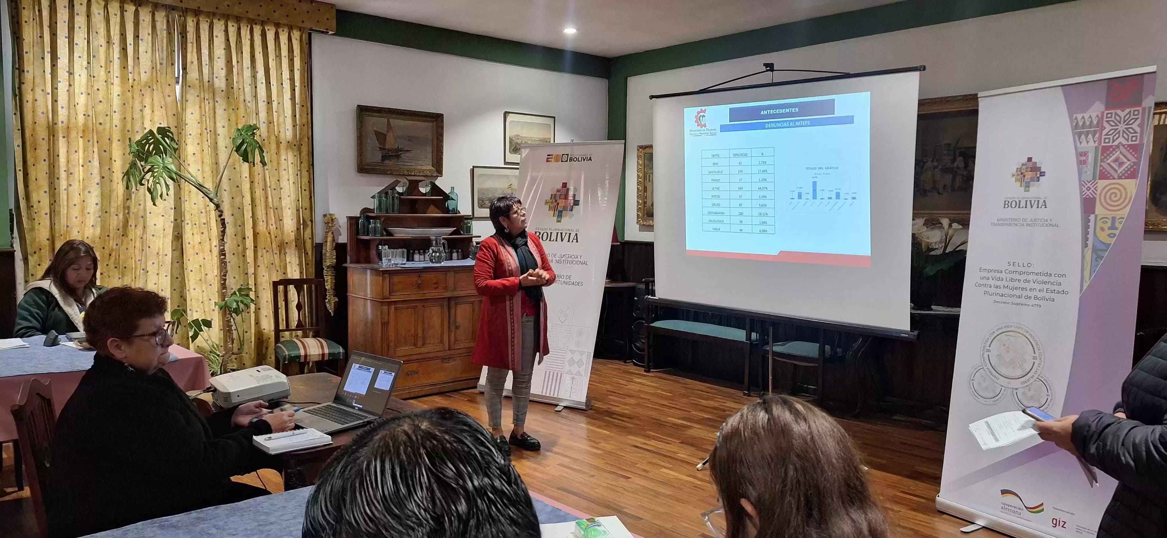 El Viceministerio de Igualdad de Oportunidades (VIO), dependiente del Ministerio de Justicia y Transparencia Institucional llevó adelante una mesa de diálogo para evaluar e identificar incentivos y beneficios para las empresas ganadoras del “Sello Empresa Comprometida con una Vida Libre de Violencia contra las Mujeres en el Estado Plurinacional de Bolivia”, responsabilidad que recayó en instancias públicas vinculadas al desarrollo y fortalecimiento de las y los actores productivos del país.