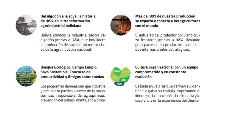 Para IASA, la sostenibilidad, es el único camino posible, ya que los mercados exigen cada vez más productos responsables con el entorno. Su trayectoria lo respalda: desde sus inicios con la industrialización del algodón hasta su consolidación como uno de los mayores exportadores de soya del país, la compañía ha crecido manteniendo siempre un principio básico: impulsar el progreso del campo boliviano.
