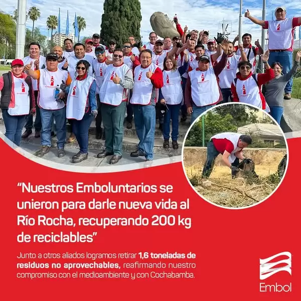 Gracias a este esfuerzo conjunto, logramos retirar 1,6 toneladas de residuos no aprovechables y recuperar 200 kg de reciclables, que fueron entregados a los recuperadores de base, impulsando así la economía circular, da cuenta un post en las redes sociales de Embol S.A.