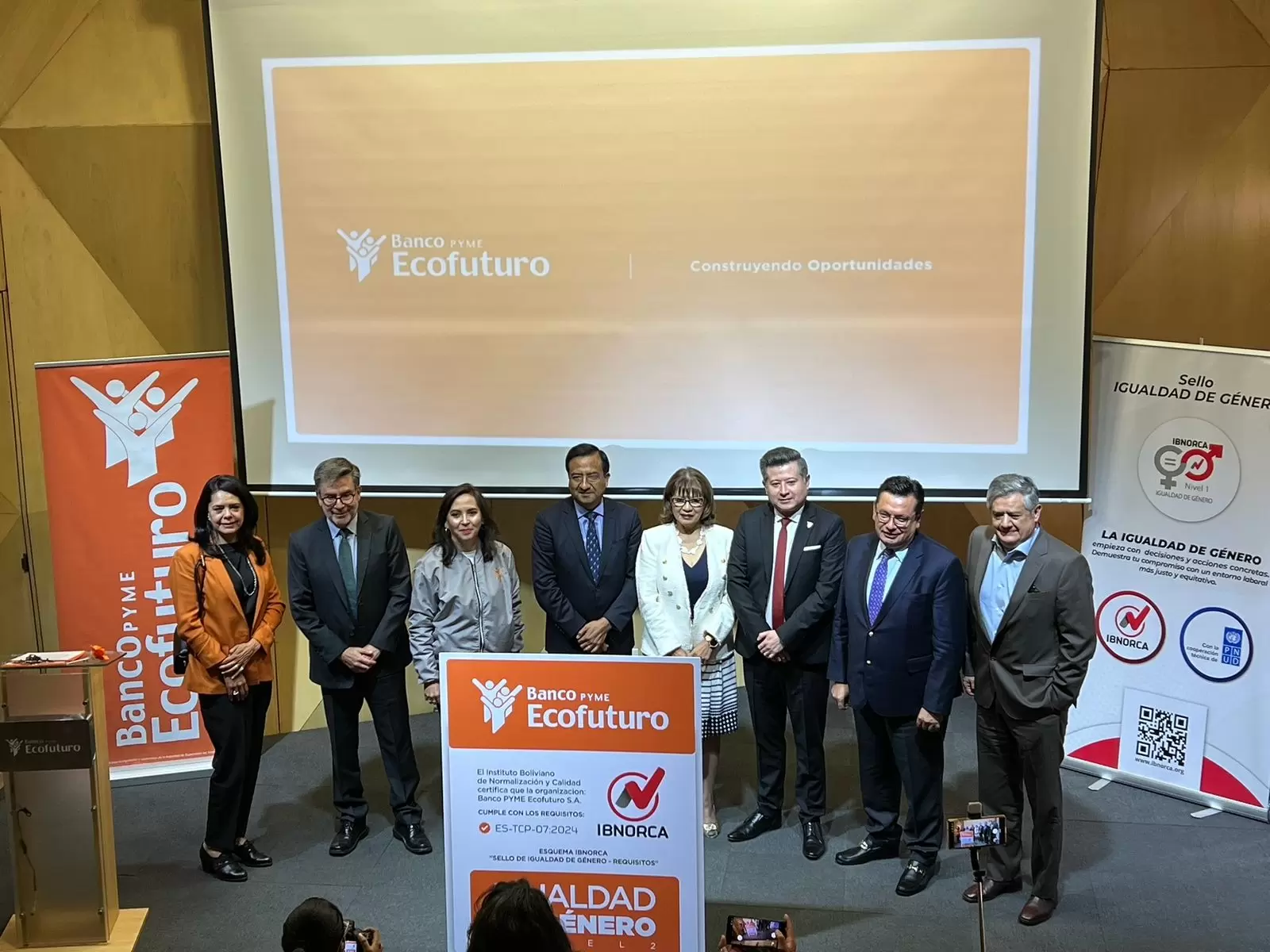 Ecofuturo está alineado con los Objetivos de Desarrollo Sostenible (ODS) de la ONU, especialmente con el ODS 10 (Reducción de las Desigualdades), al ser la primera empresa y banco boliviano en recibir el Sello de Igualdad de Género – Nivel 2 otorgado por IBNORCA