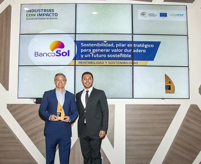 Recibe el galardón por integrar la sostenibilidad en todas sus operaciones y ser el único banco privado en América Latina con dos bonos sociales consecutivos, exclusivos para género y por ser el primer banco de Bolivia en alcanzar la carbononeutralidad de sus emisiones institucionales.