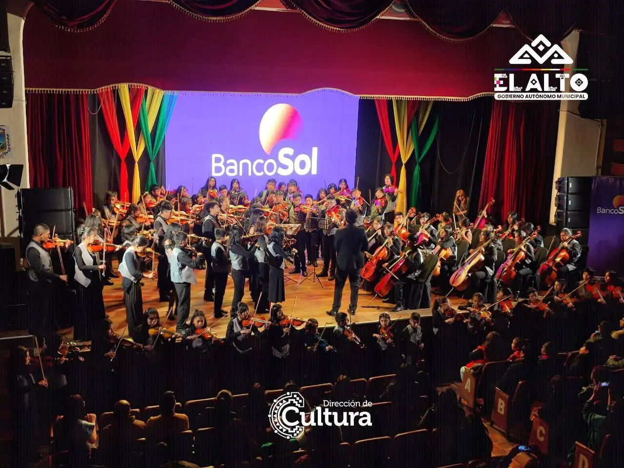 Centenares de jóvenes y niños de la ciudad de El Alto hicieron vibran el Teatro Raúl Salmón de la Barra con el CONCIERTO DE CUERDAS CLAVESOL de la entidad financiera de BancoSol.