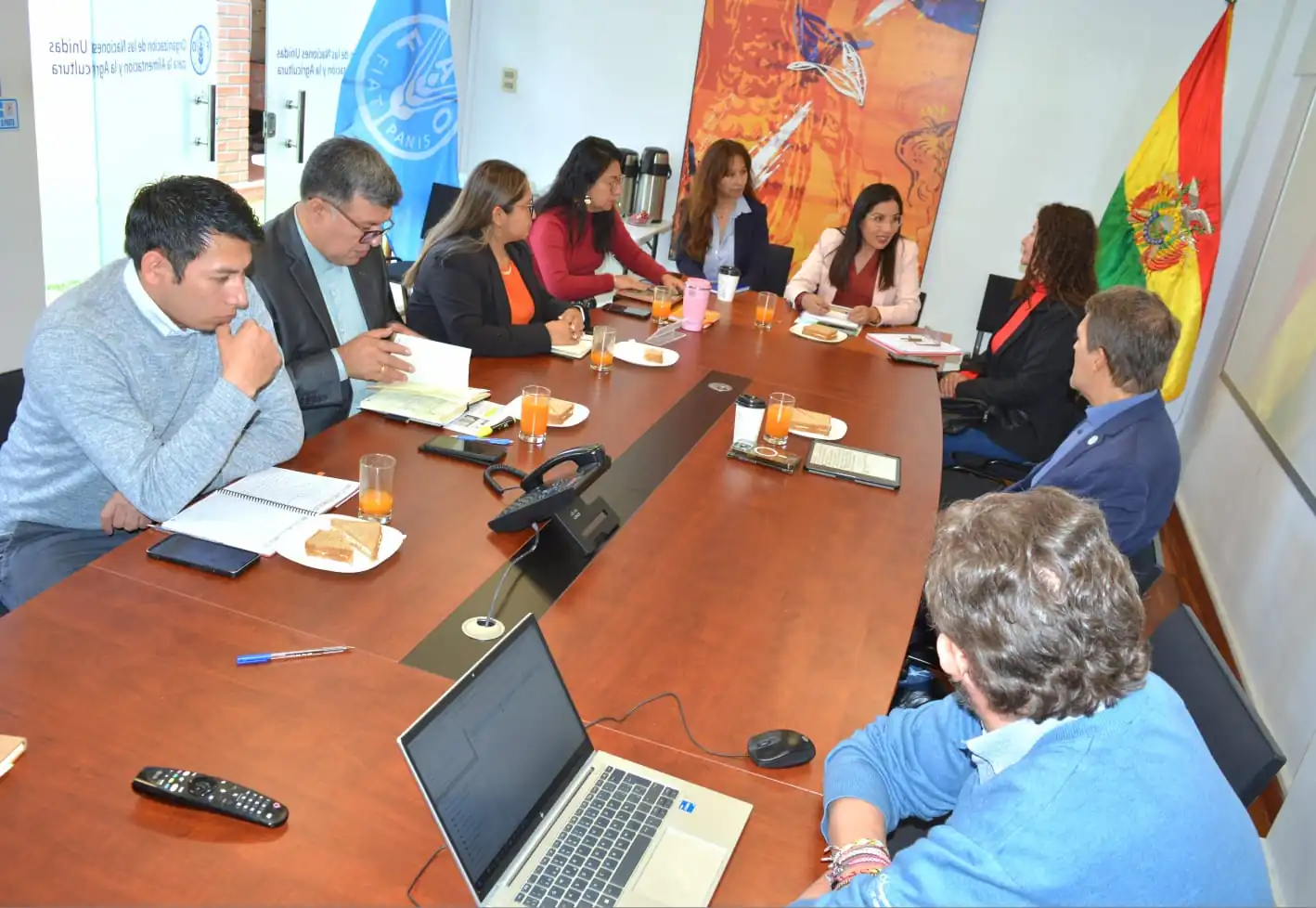 La viceministra de Recursos Hรญdricos, Riego, Agua Potable y Saneamiento Bรกsico, Viviana Mariscal Montaรฑo, y el representante de la Organizaciรณn de las Naciones Unidas para la Alimentaciรณn y la Agricultura (FAO) en Bolivia, Rodrigo Roubach, llevaron adelante hoy una agenda de reuniones tรฉcnicas para coordinar la implementaciรณn de proyectos en todo el territorio nacional.